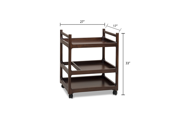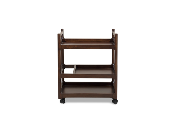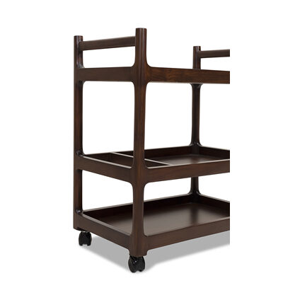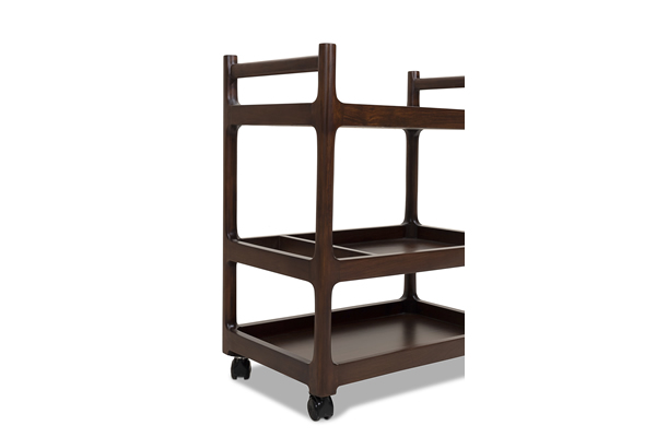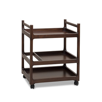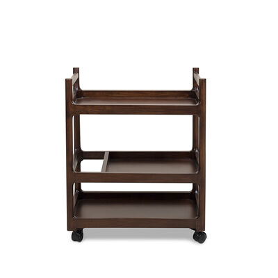 Service trolley made in teakwood & teakboard with 3 shelves convenient to use in matt finish and walnut polish. Also available in Natural teak.