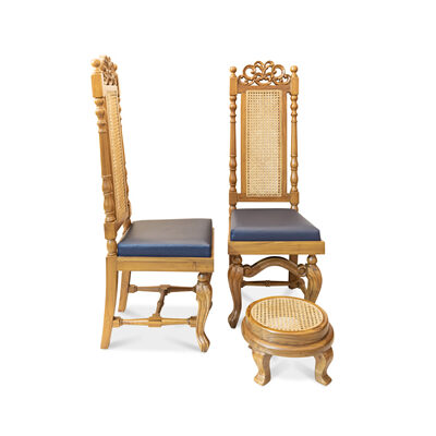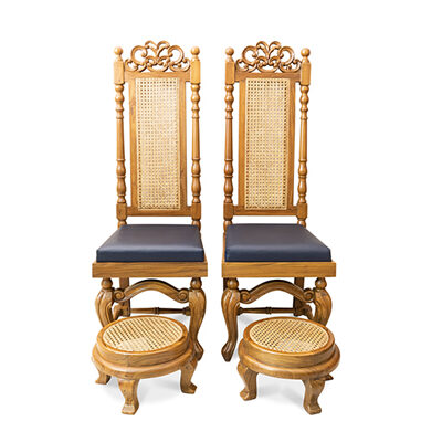 finished back and high density cushioned seat with cane finished footrest. Duly polished in matt finished Natural teak colour.