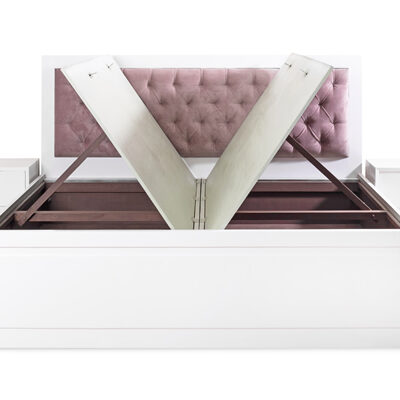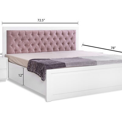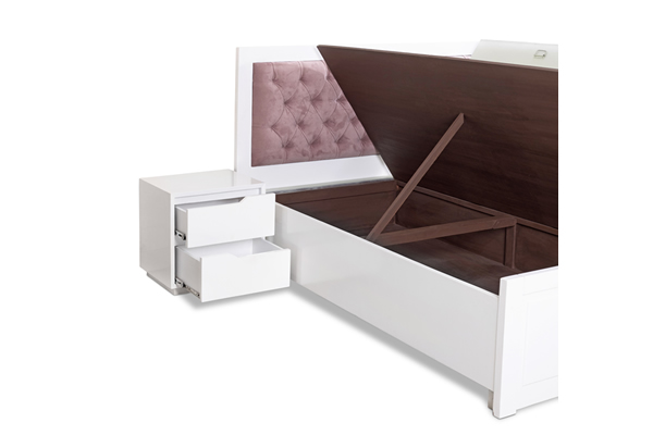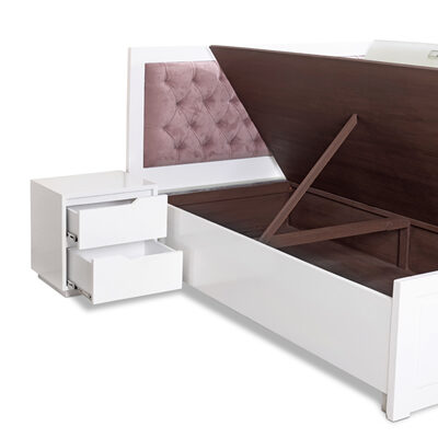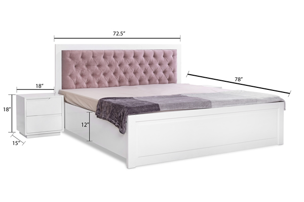 King size double bed with quilted back, underneath storage and sleek 2 drawer bed side tables. Available in duko & Natural Teak polish