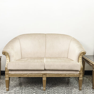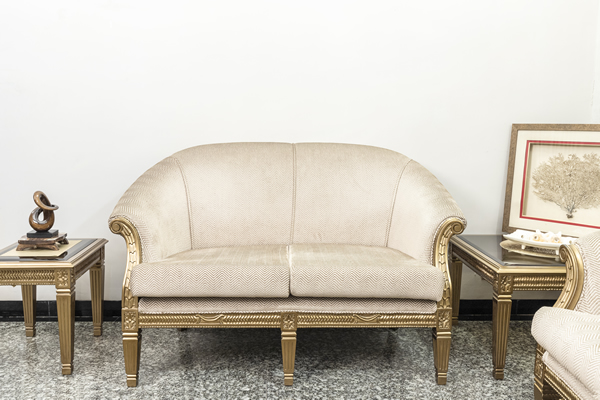 2 seater sofa set with fully teak wood structure in gold finish using 40 density foam cushions, very durable, upholstered in superior suede fabric. Available in 2 & 3 seater configuration.
